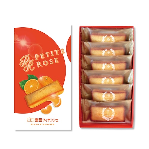 こちらの『Petite Rose 愛媛 蜜柑フィナンシェ』は、しまなみ海道の発着地である愛媛県の特産・蜜柑を使ったフィナンシェ。