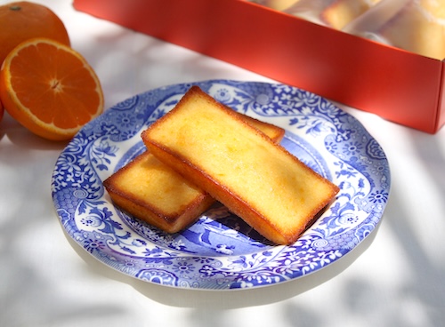 愛媛の高級柑橘として知られる〝せとか〟という品種の果汁がふんだんに使われたフィナンシェで、注目すべきはその食感と風味。
